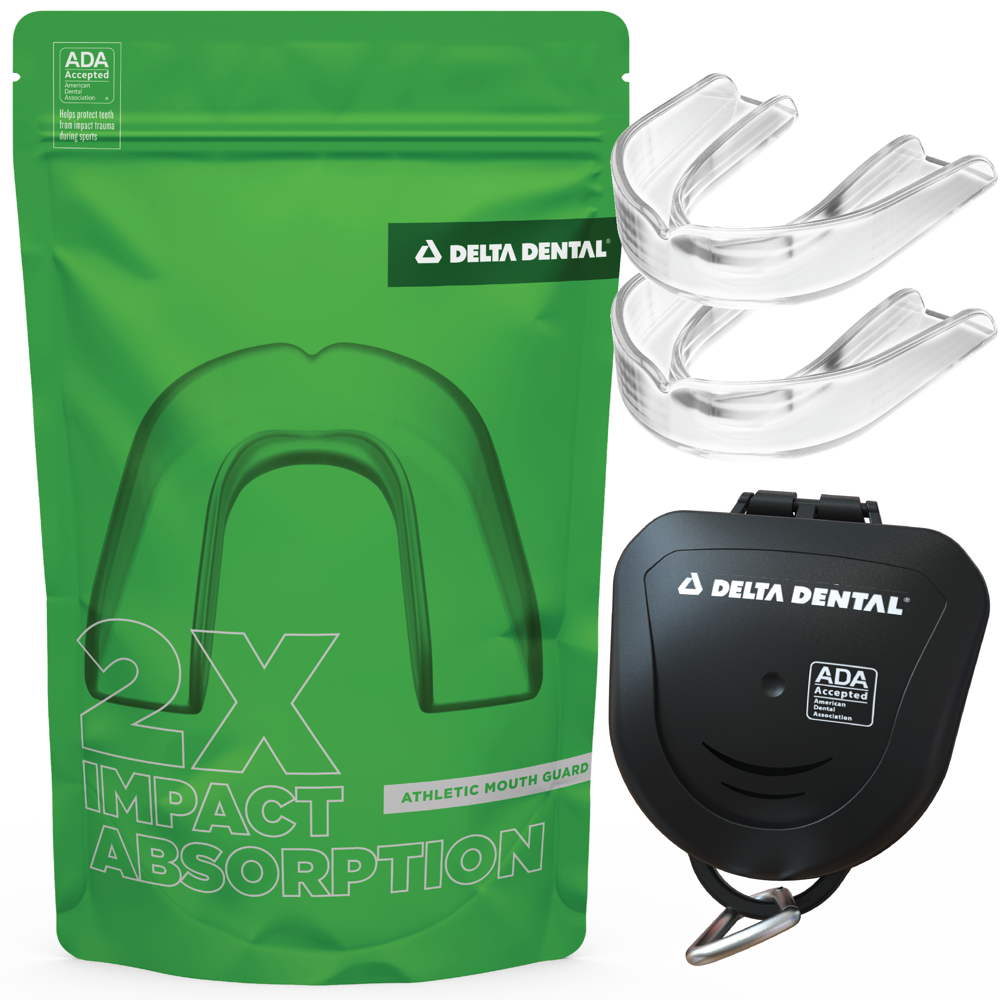 The Delta Dental Athletic Mouth Guard is designed to protect athletes with 2x the impact absorption of traditional mouth guards. It is accepted by the American Dental Association (ADA) and the patented fitting material makes speaking, drinking and breathing easier. The Delta Dental Athletic Mouth Guard provides a remoldable, braces-friendly fit.